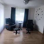 An equipped kitchenette along with tea and coffee making equipment, a fridge, and an oven are available in the holiday home.